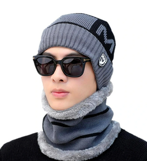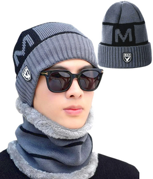 Vīriešu cepures un šalles komplekts S120, pelēks