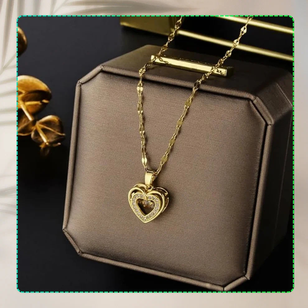 Zelta kaklarota ar cirkoniem un četrlapu āboliņu, ķirurģiskais tērauds
