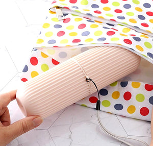 Šis zobu birstes ceļojumu maciņš ir praktisks un ērts risinājums ceļojumiem. To var viegli piestiprināt pie āķa, vannas istabas pakaramā vai rokassomiņas, lai jūsu zobu kopšanas līdzekļi vienmēr būtu pa rokai.