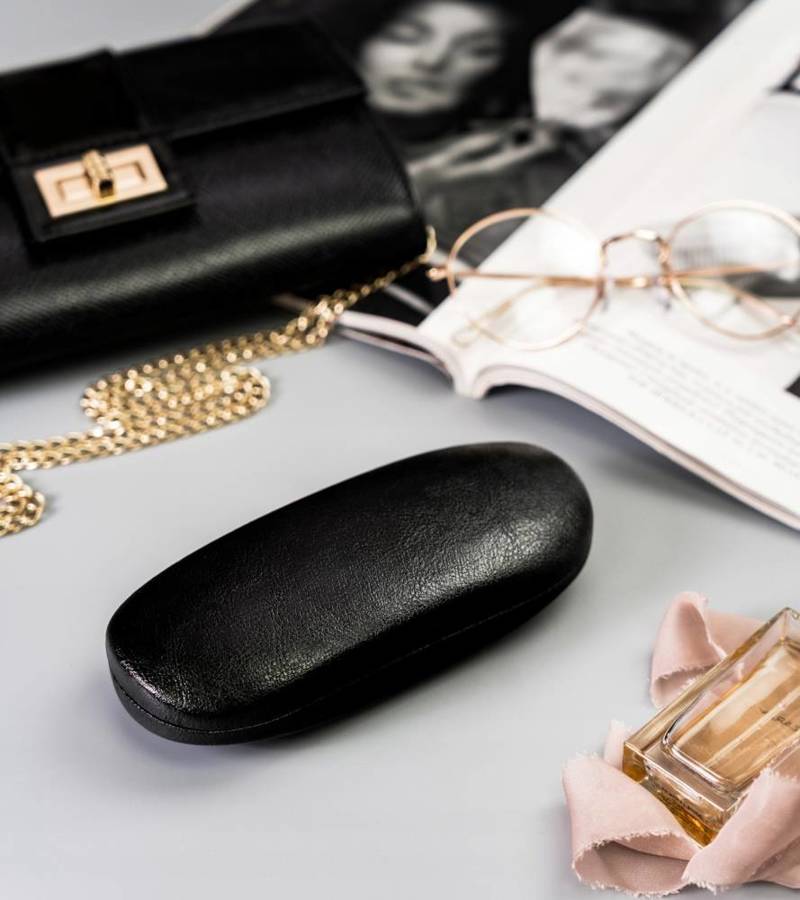 Vāciņš ir pārklāts ar spīdīgu eko-ādu, kas piešķir tam elegantu izskatu. Iekšpuse ir izklāta ar izturīgu aizsargmateriālu, kas pasargā brilles no skrāpējumiem.