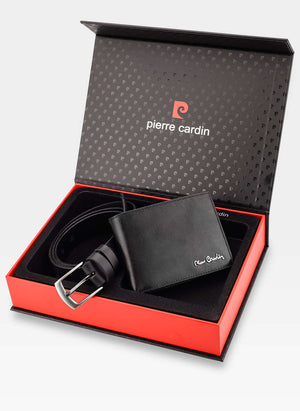 Dāvanu komplekts: Pierre Cardin maks un melna Stevens ādas josta