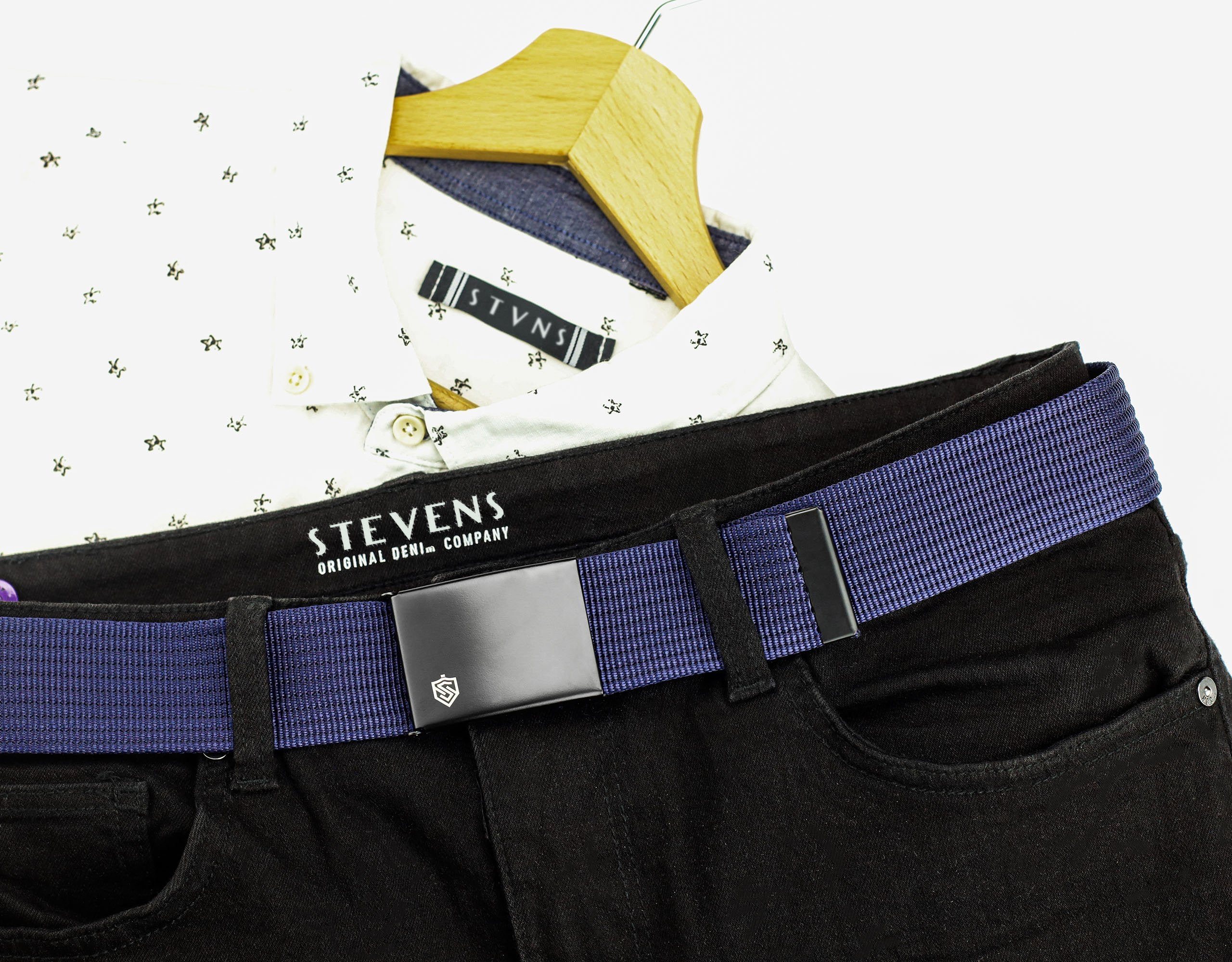 2 siksnu komplekts STEVENS melns + tumši zils, 135 cm XL, universāls