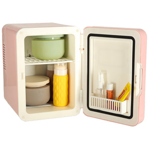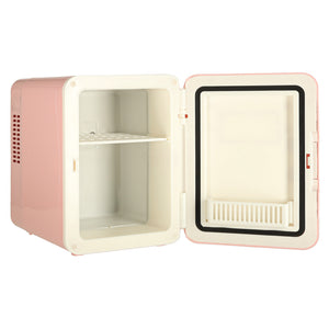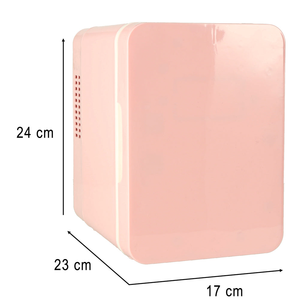 Elektriskais automašīnas mini ledusskapis pārtikai, kosmētikai, apkurei un dzesēšanai 2in1 4l rozā krāsā