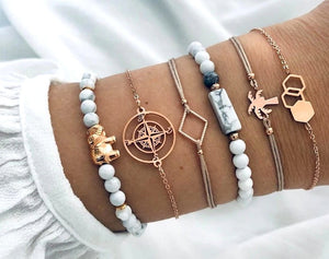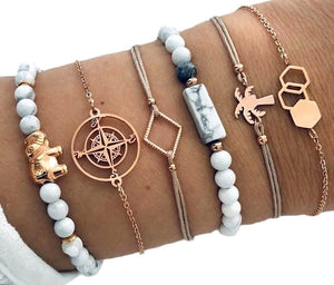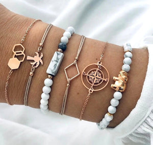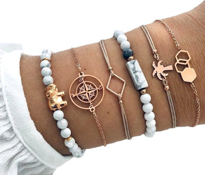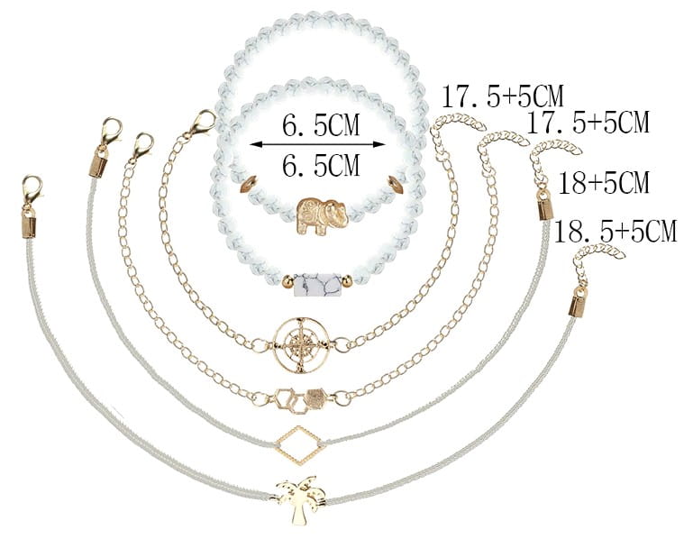 6 zelta un krēmkrāsas aproču komplekts ar ziloni un palmu