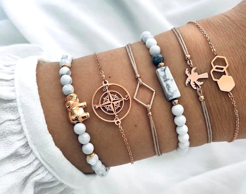 Atklājiet ekskluzīvu 6 zelta aproču komplektu, kas būs lielisks papildinājums jūsu rotaslietu kolekcijai. Katrai no šīm iespaidīgajām aprocēm ir unikāls dizains un augsta kvalitāte. Mūsu iespaidīgās aproces apvieno dārgmetālus un pērlītes, piešķirot tām unikālu raksturu un eleganci.