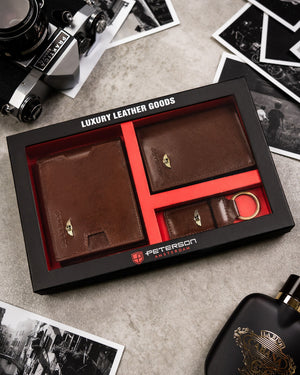 Dāvanu komplekts: vīriešu ādas maks, maciņš un atslēgu piekariņš - Peterson P19