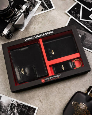 Dāvanu komplekts: vīriešu ādas maks, maciņš un atslēgu piekariņš - Peterson P20