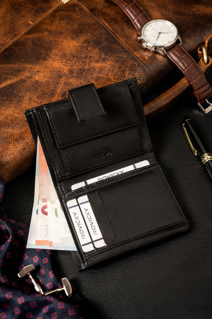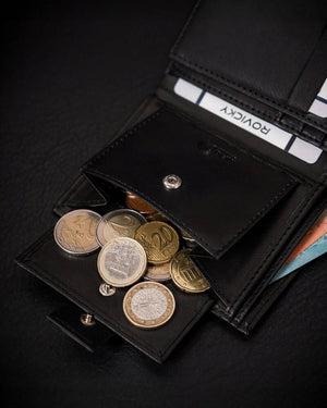 - Pietiekami daudz vietas kartēm, dokumentiem, skaidrai naudai un monētām.