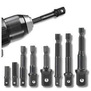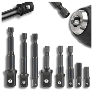 - **Izmēri:** 8 dažādi adapteri – 1/4", 3/8", 1/2 collas dažādos garumos, kas nodrošina lielāku elastību.
