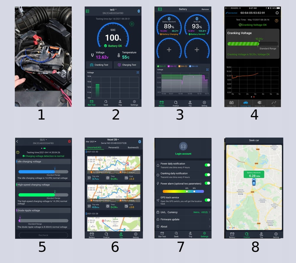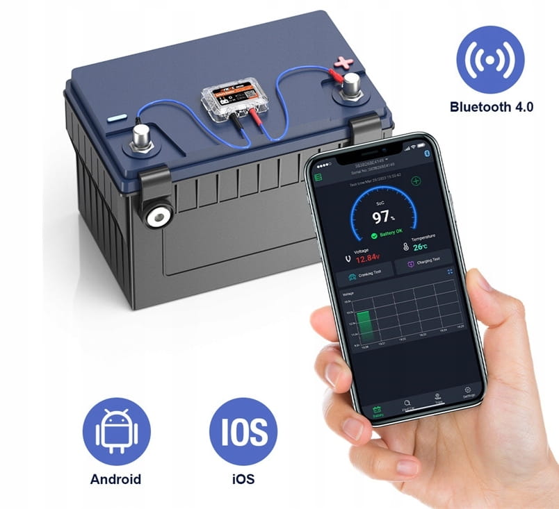 Akumulatora un ģeneratora testeris ar GPS, Android, iOS