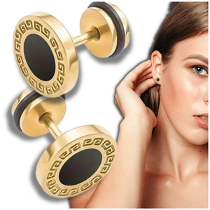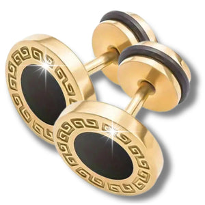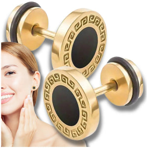 Apzeltīti auskari ar melnu akcentu, ķirurģiskais tērauds