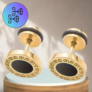 Šie auskari ir izgatavoti no augstas kvalitātes ķirurģiskā tērauda, apzeltīti un ar melnu pildījumu. Tie ir moderni un minimālistiski, lieliski piemēroti gan ikdienas valkāšanai, gan īpašiem gadījumiem.