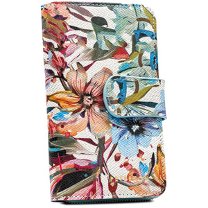 Didelis moteriškas odinis piniginės–dėklo tipo modelis su gėlių raštu