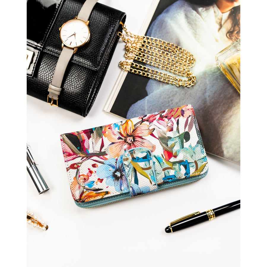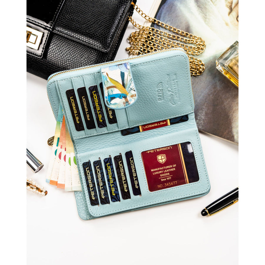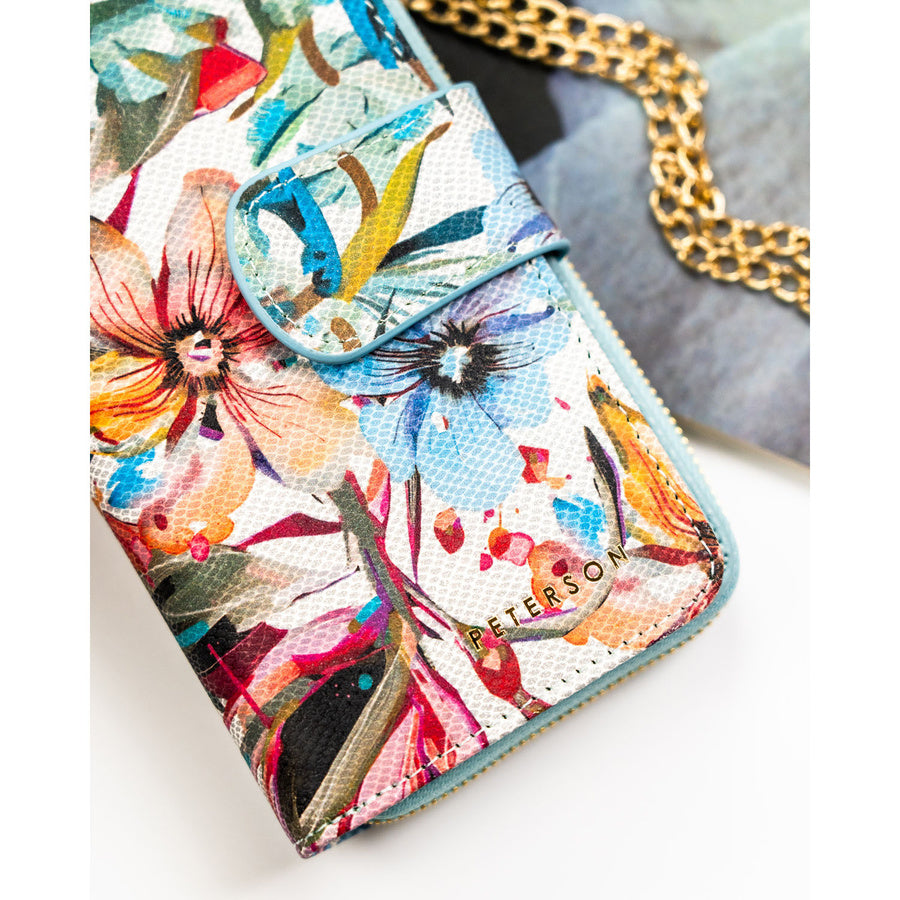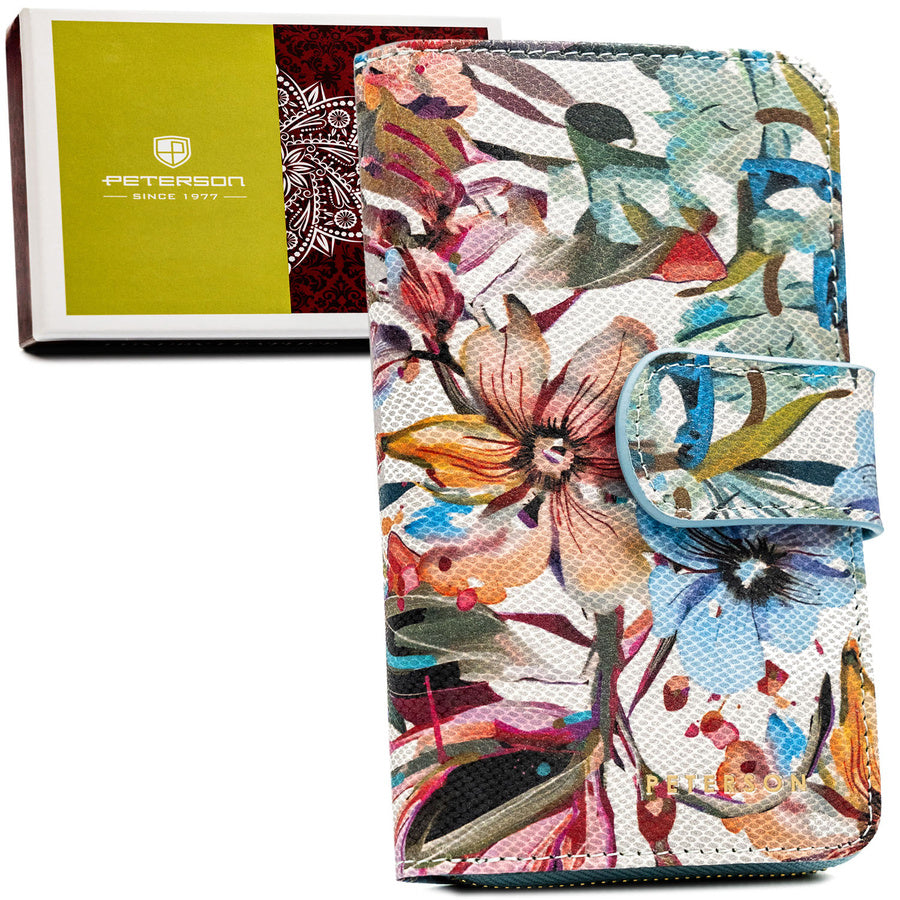 Didelė moteriška natūralios odos piniginė–dėklas „Peterson“, gėlėto rašto TL13