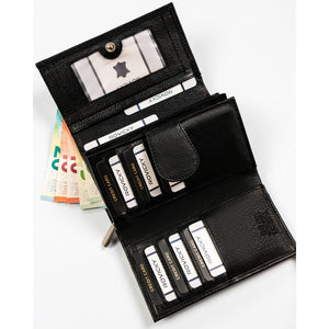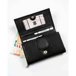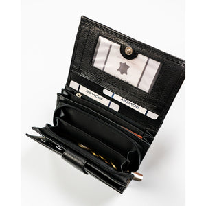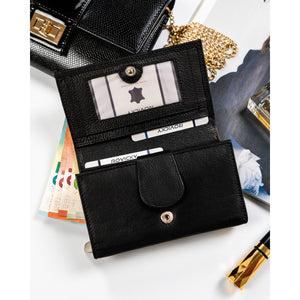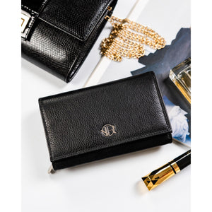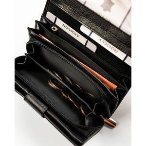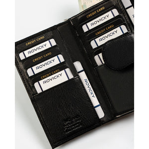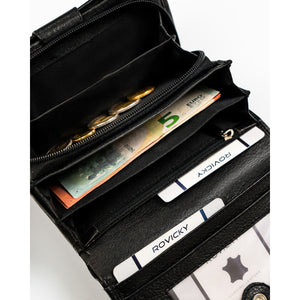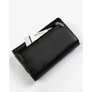 Rovicky sieviešu rokassoma no īstas ādas, melnā krāsā, ar rāvējslēdzēju un RFID aizsardzību.