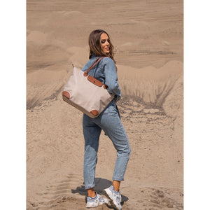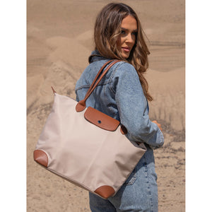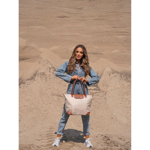 Peterson liela bēša poliestera rokassoma, kas lieliski piemērota ikdienas lietošanai.