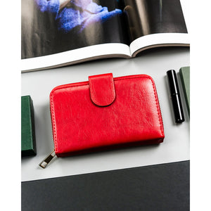 Didelis raudonas moteriškas piniginės tipo dėklas iš ekologiškos odos