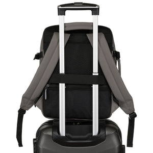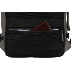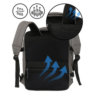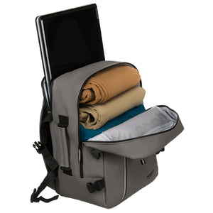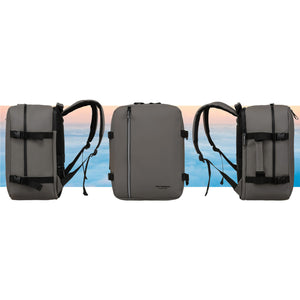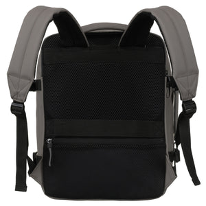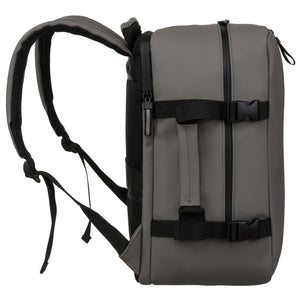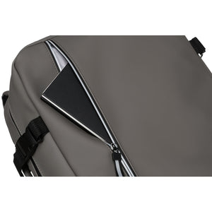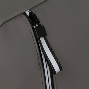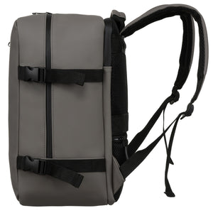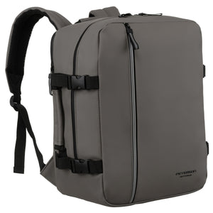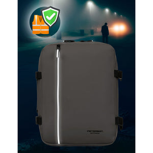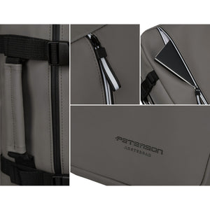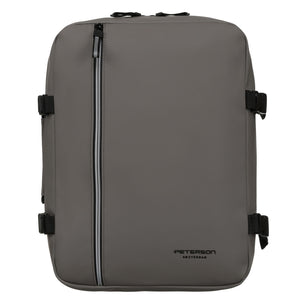 Peterson pelēka liela mugursoma ar nodalījumiem, kas izgatavota no mākslīgās ādas, ir lieliski piemērota ikdienas lietošanai.
