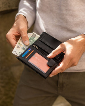 - 1 plats dokumentu nodalījums zem monētu kabatas.