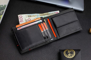 • Kartēm un dokumentiem: 9 kartes nodalījumi; kabata reģistrācijas apliecībai (zem kartes sekcijas); 2 plakanas kabatas dokumentiem; papildus kabata zem monētu kabatas.