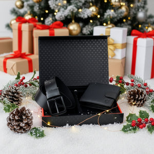 Horizontali vyriška piniginė iš taurios veršelio odos ir juodas odinis diržas. Komplekte – elegantiška dovanų dėžutė. Tai stilinga ir paruošta dovana reikliam vyrui.