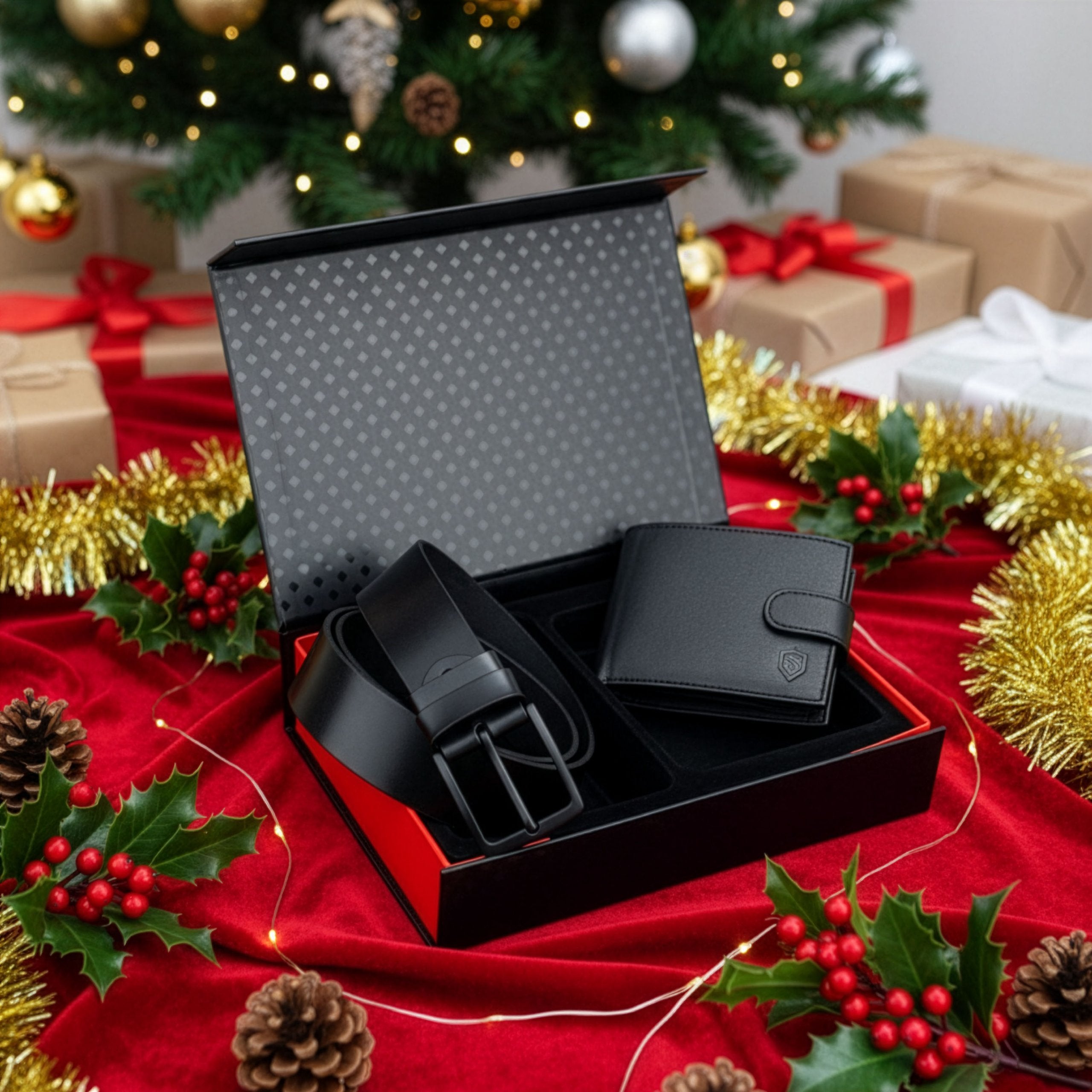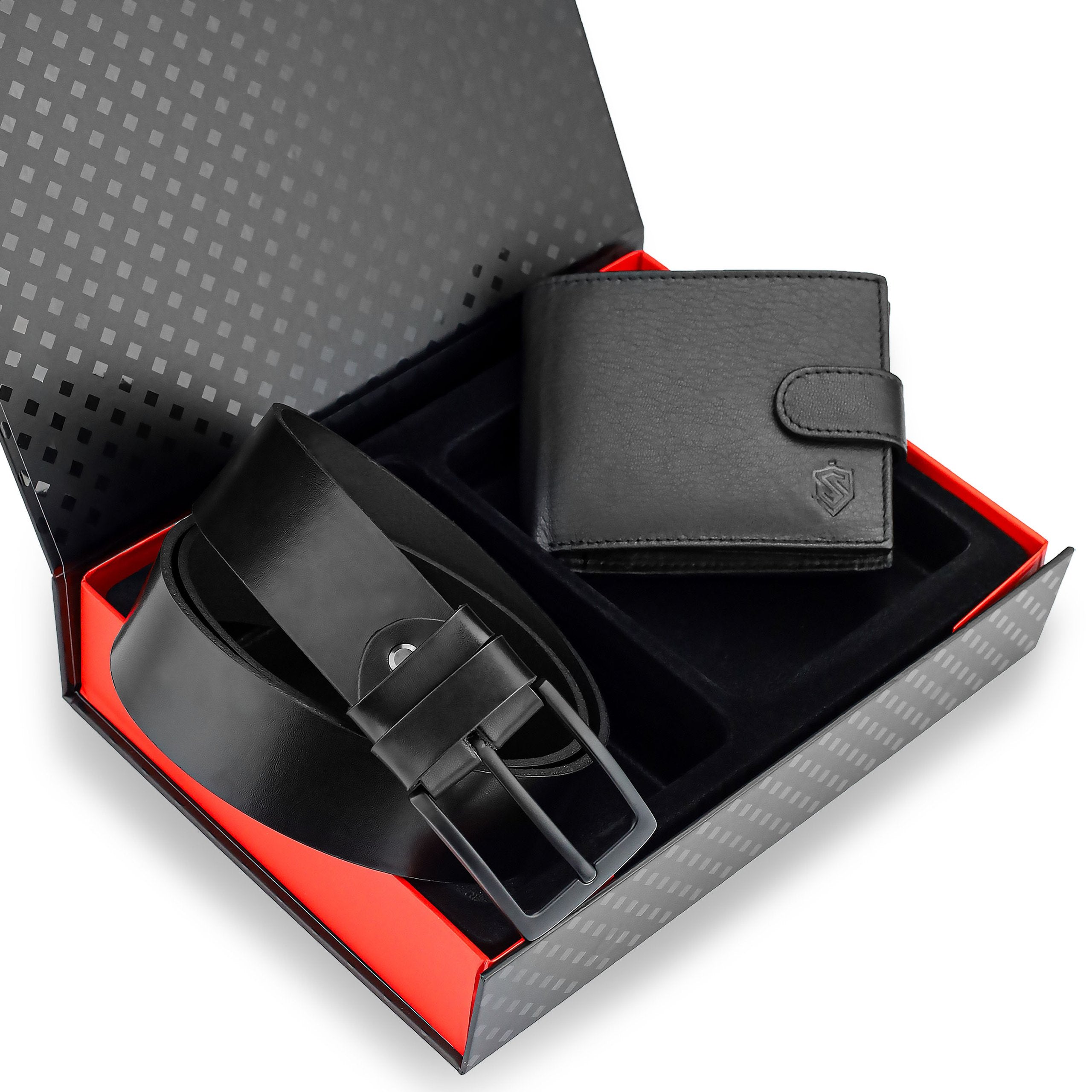 Dovanų rinkinys vyrams – piniginė ir diržas „Stevens 325A“, juoda PREMIUM
