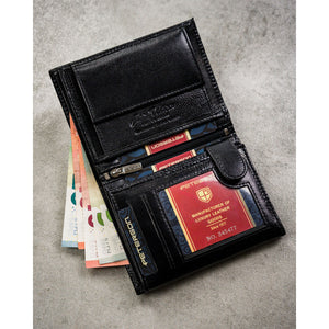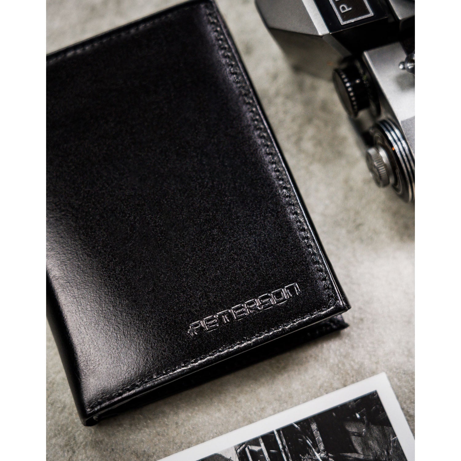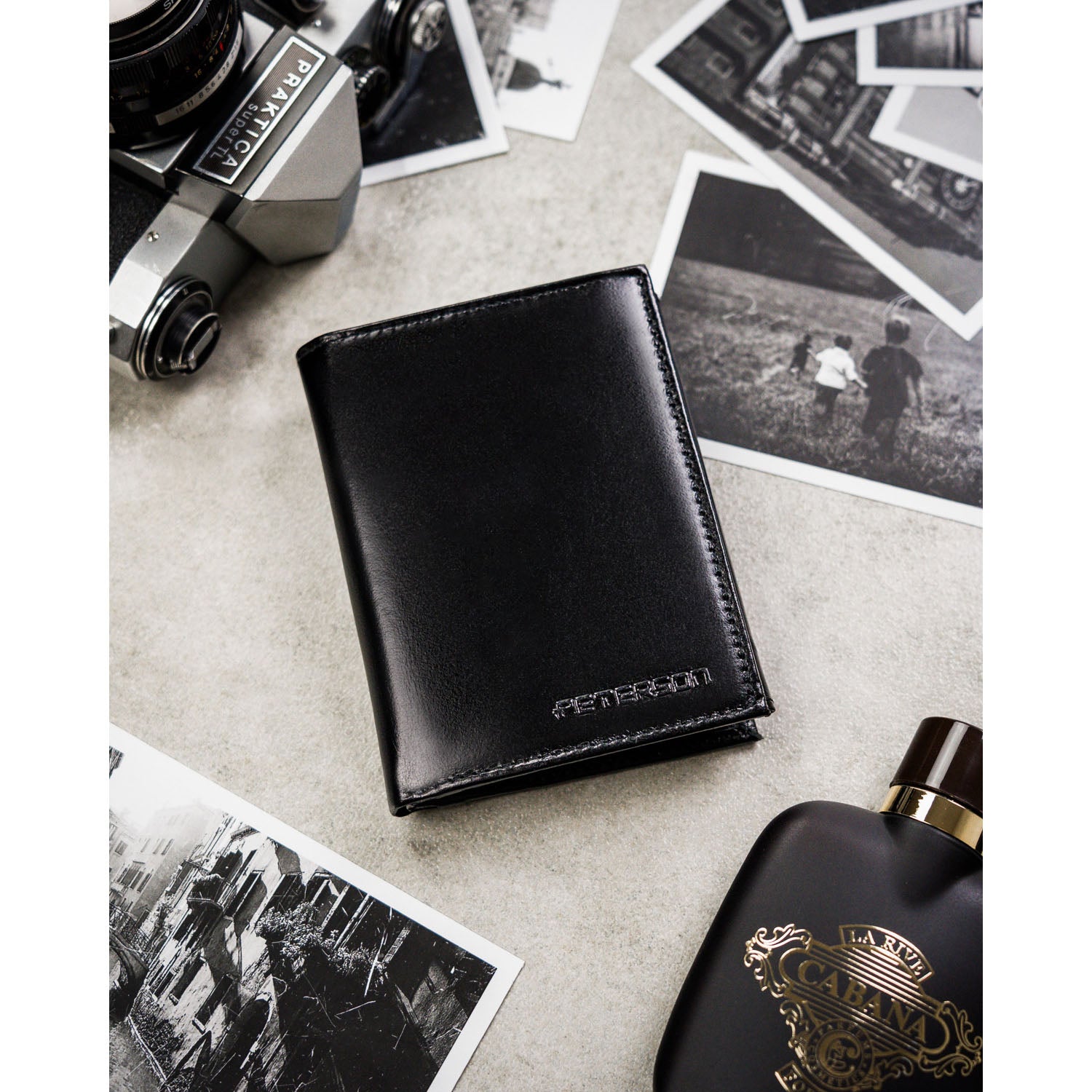 Dāvanu komplekts vīriešiem: vertikāls īstas ādas maks ar RFID aizsardzību + Peterson eko ādas josta