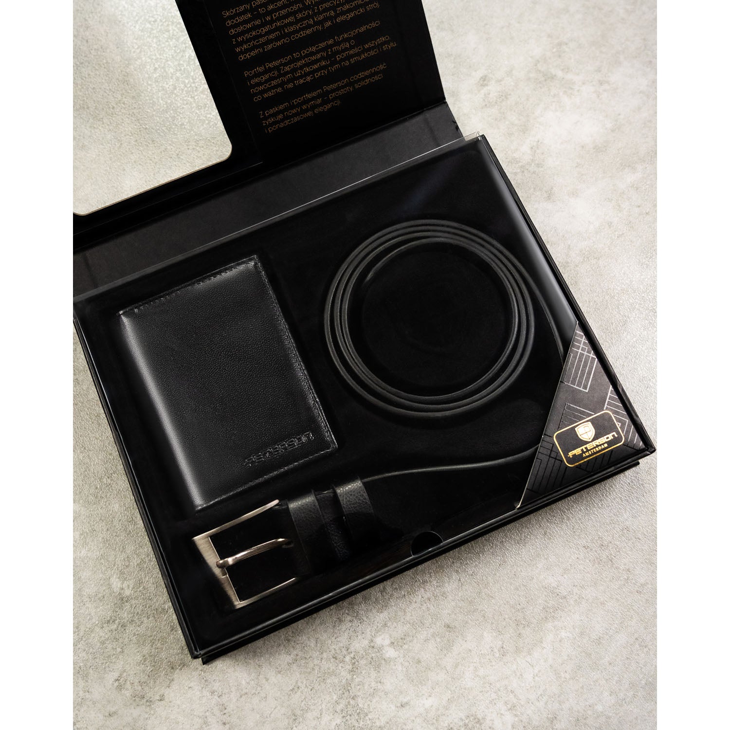 Dāvanu komplekts vīriešiem: maks ar jostu Peterson N4-NGV
