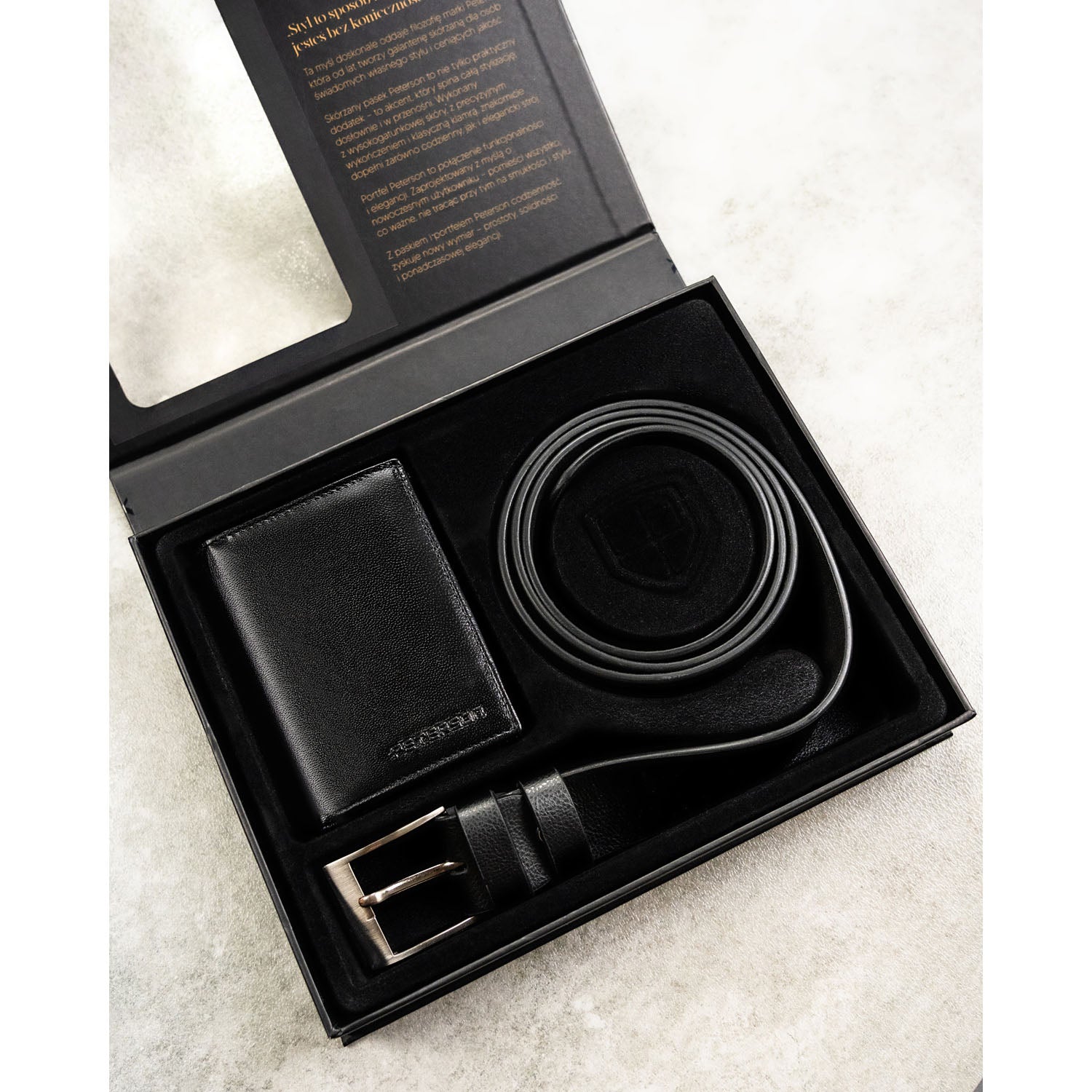 Komplekts apvieno funkcionalitāti, izturību un smalku eleganci. Īstas ādas maks un eko ādas josta veido saskaņotu komplektu, kas piemērots gan ikdienas lietošanai, gan īpašiem gadījumiem.