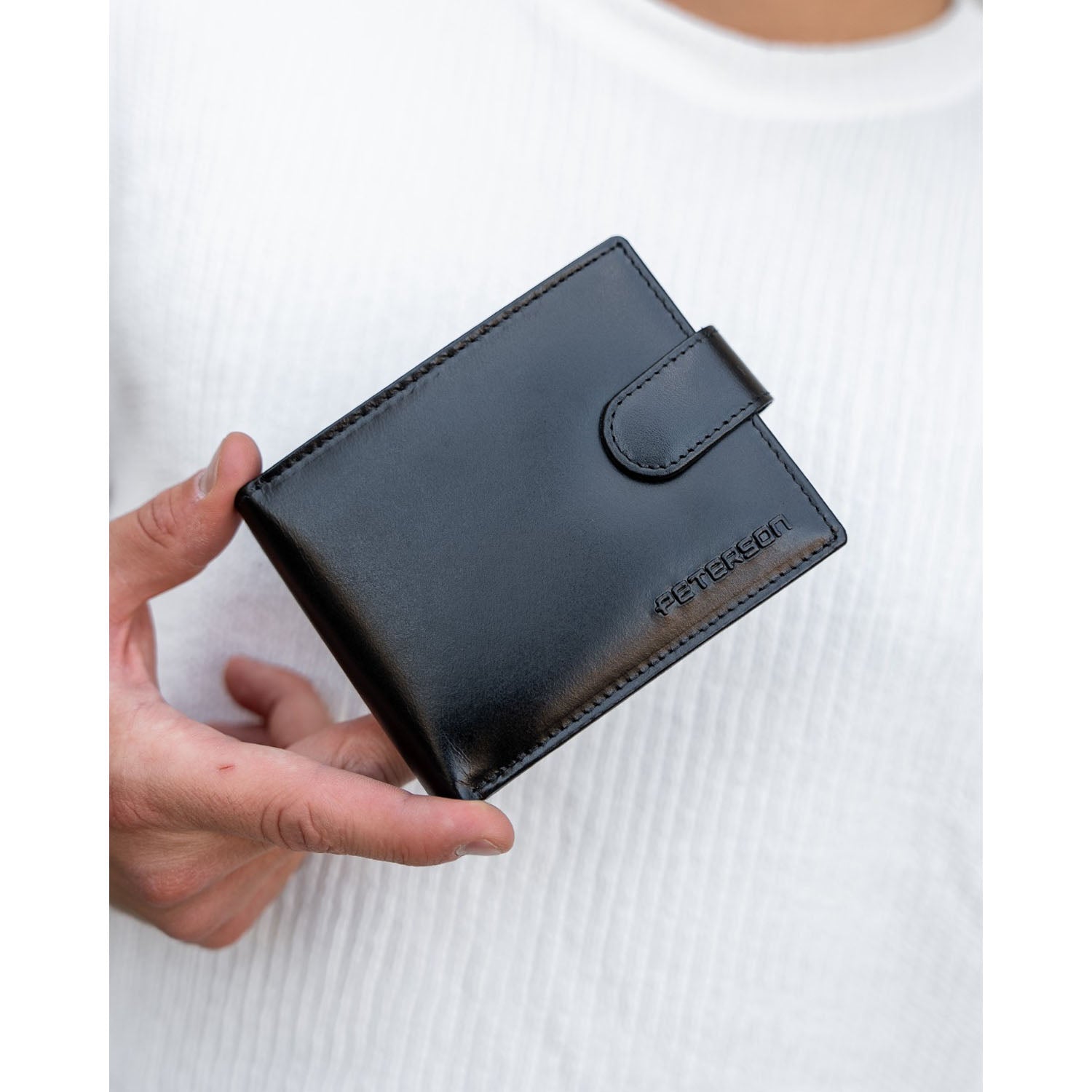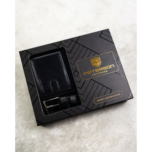 Dāvanu komplekts vīriešiem: īstas ādas maks ar RFID aizsardzību + Peterson eko ādas josta