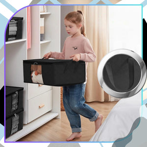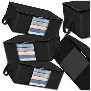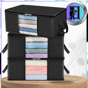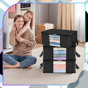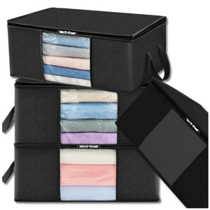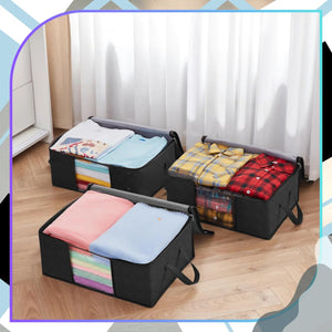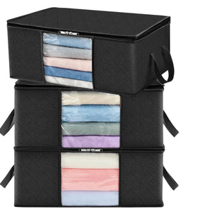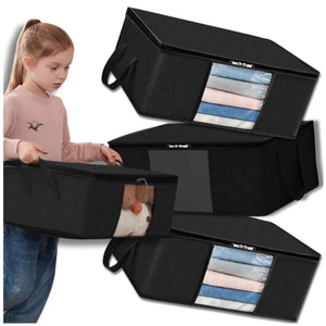 Šis trīsdaļīgais melnais organizatoru komplekts ir lielisks risinājums drēbju, gultasveļas un segu glabāšanai. Somas ir ietilpīgas un viegli lietojamas, tāpēc tās palīdzēs uzturēt kārtību mājās.