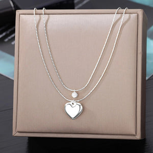 Šī elegantā ķēdīte ir izgatavota no 316L ķirurģiskā tērauda, kas ir hipoalerģisks un izturīgs pret koroziju. Šai dubultajai ķēdītei ir sirds formas kulons un cirkons. Lieliski piemērota gan elegantam, gan ikdienas tērpam.