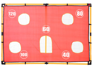 Lieli vārti ar paklājiņu, kurā ir izgriezti caurumi, ļaus jums praktizēt precīzus sitienus pa vārtiem, neiesaistot vārtsargu.