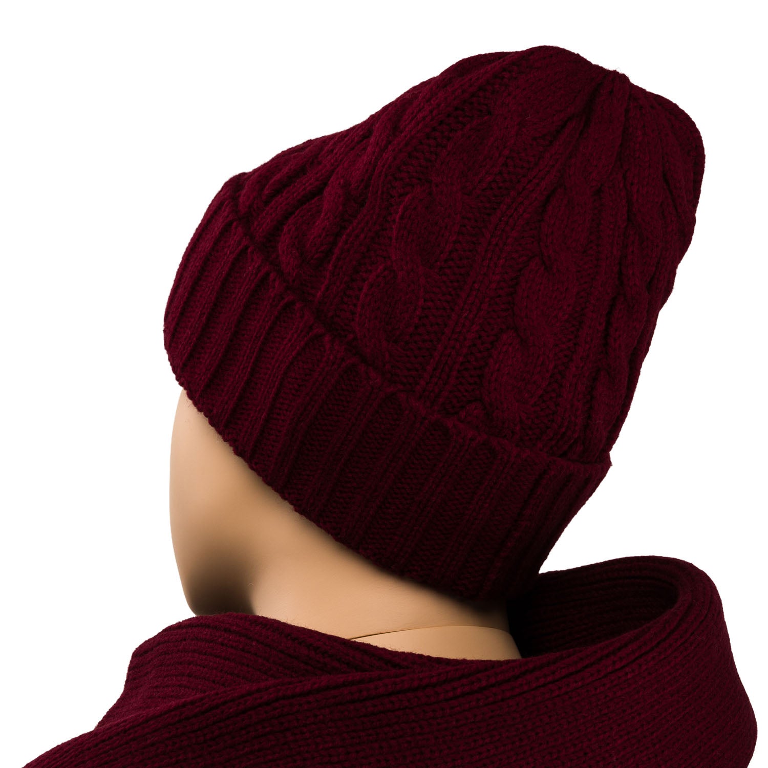 Peterson bordo krāsas sieviešu šalles un cepures komplekts – lieliski piemērots rudens un ziemas sezonai.