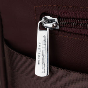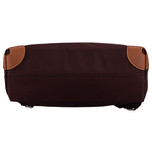 Mažas moteriškas Peterson rudas–bordo kuprinė iš poliesterio – patogus miesto kuprinė kasdienai.