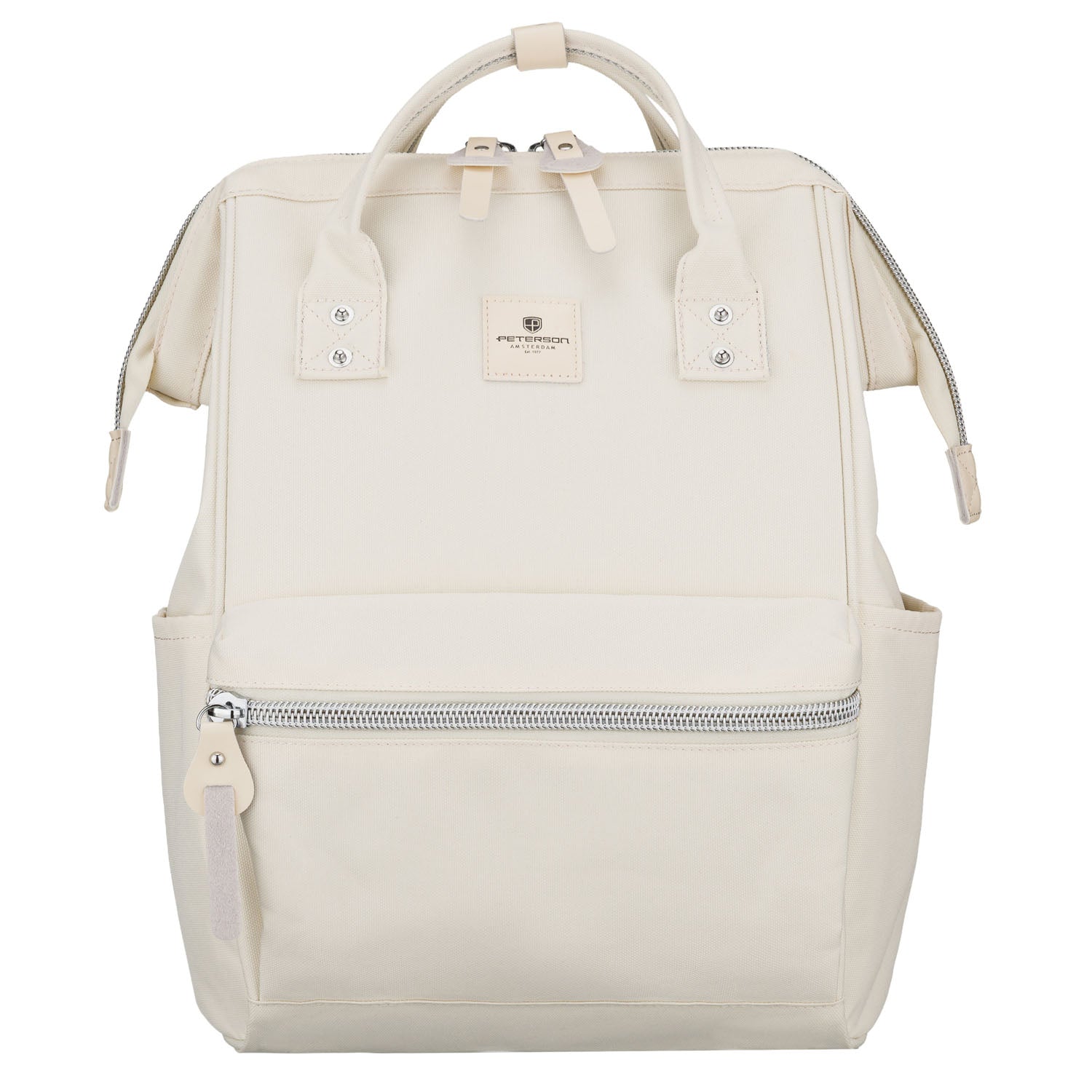 Sieviešu mugursoma Peterson, bēša, izgatavota no izturīga poliestera - praktiska izvēle ikdienas lietošanai, darbam vai pilsētas braucieniem. Gaišā, daudzpusīgā ekru krāsa ir viegli pieskaņojama dažādiem apģērba stiliem.