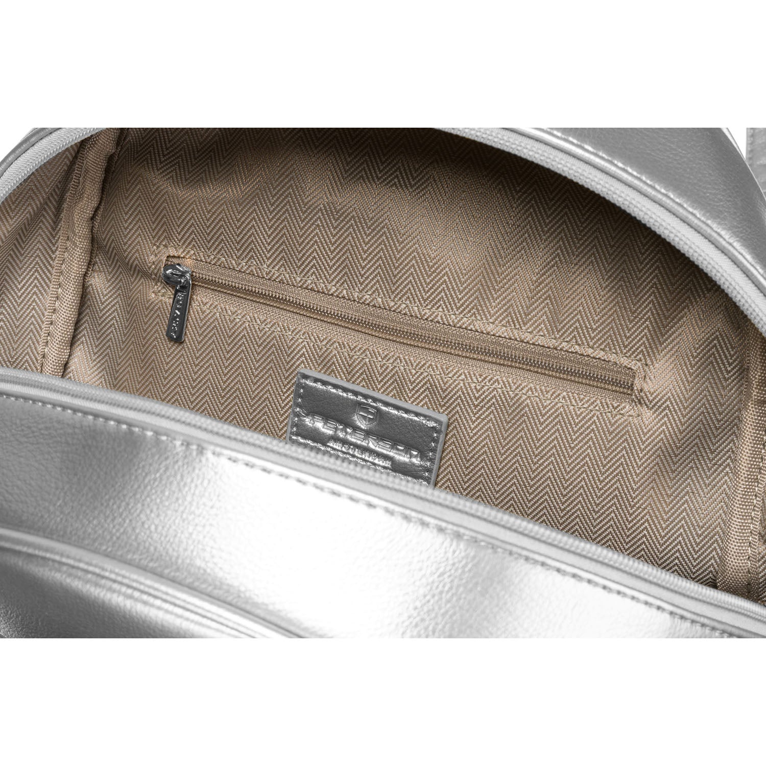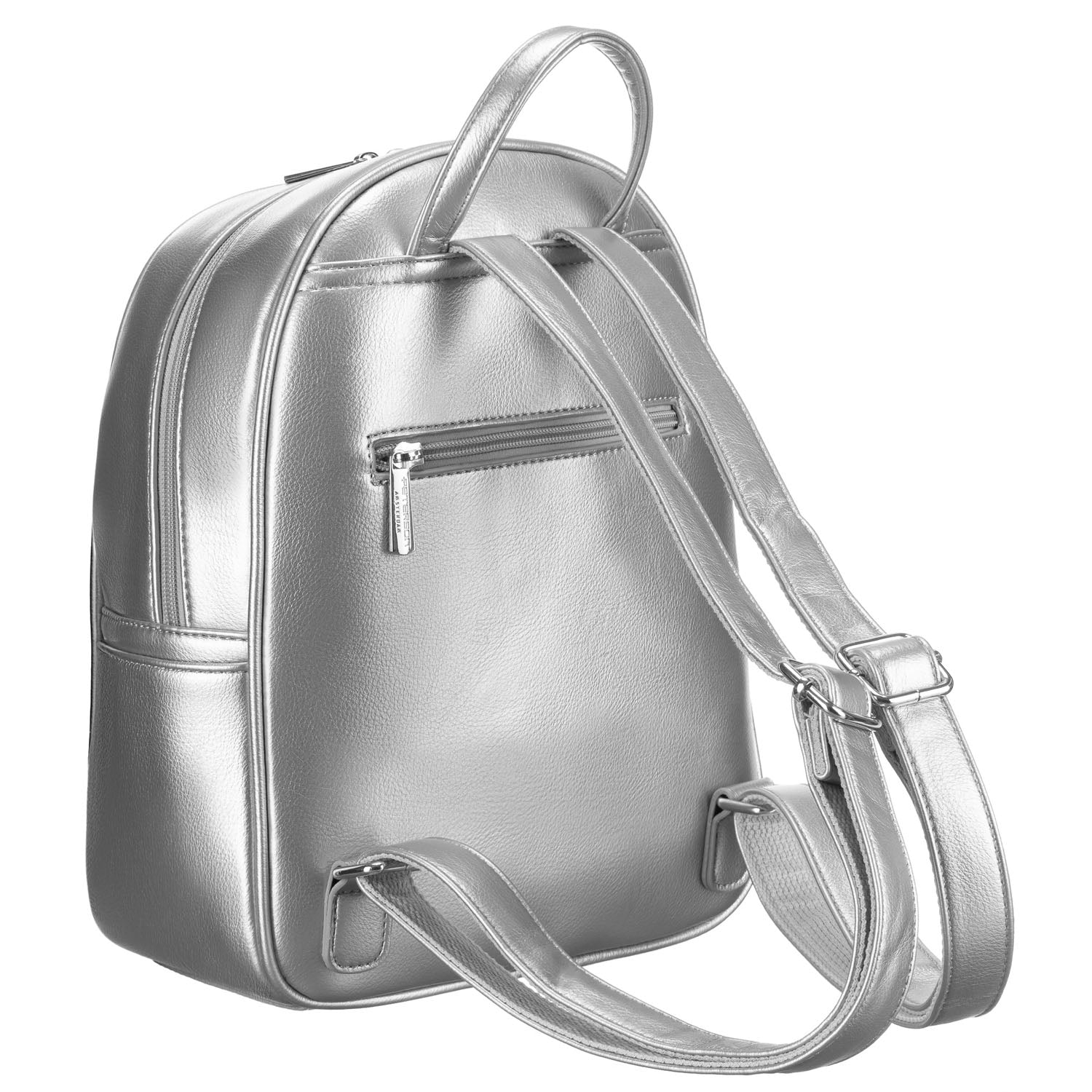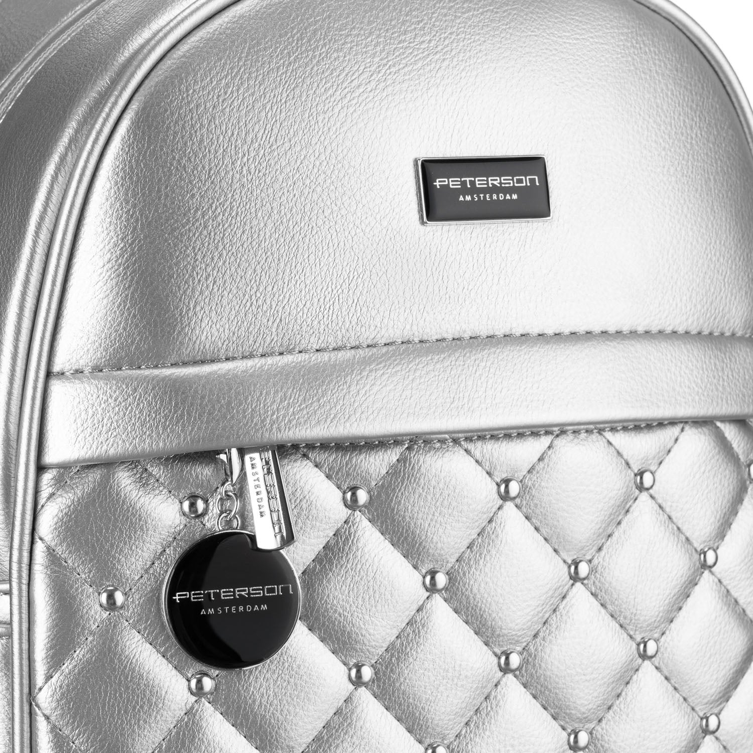 Peterson sudraba krāsas sieviešu mugursoma, kas izgatavota no eko ādas - stilīga un ērta izvēle.