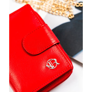 Rovicky sarkana sieviešu rokassoma no īstas ādas - kompakta un stilīga ikdienas lietošanai.
