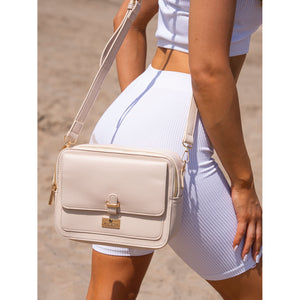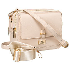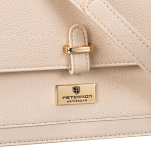 Peterson bēša sieviešu rokassoma no mākslīgās ādas - stilīga un praktiska izvēle ikdienas lietošanai.