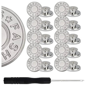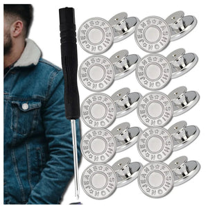 Metāla pogu komplekts biksēm ar skrūvgriezi, 10 gab., sudrabkrāsas, metāla