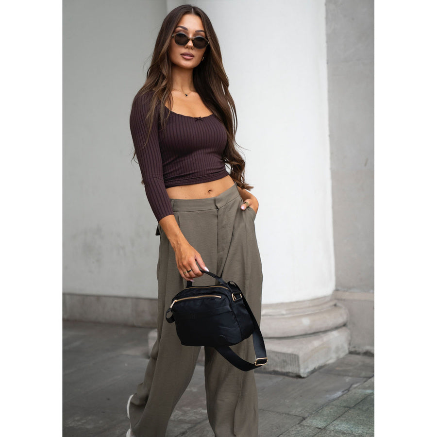 Melna sieviešu neilona plecu soma