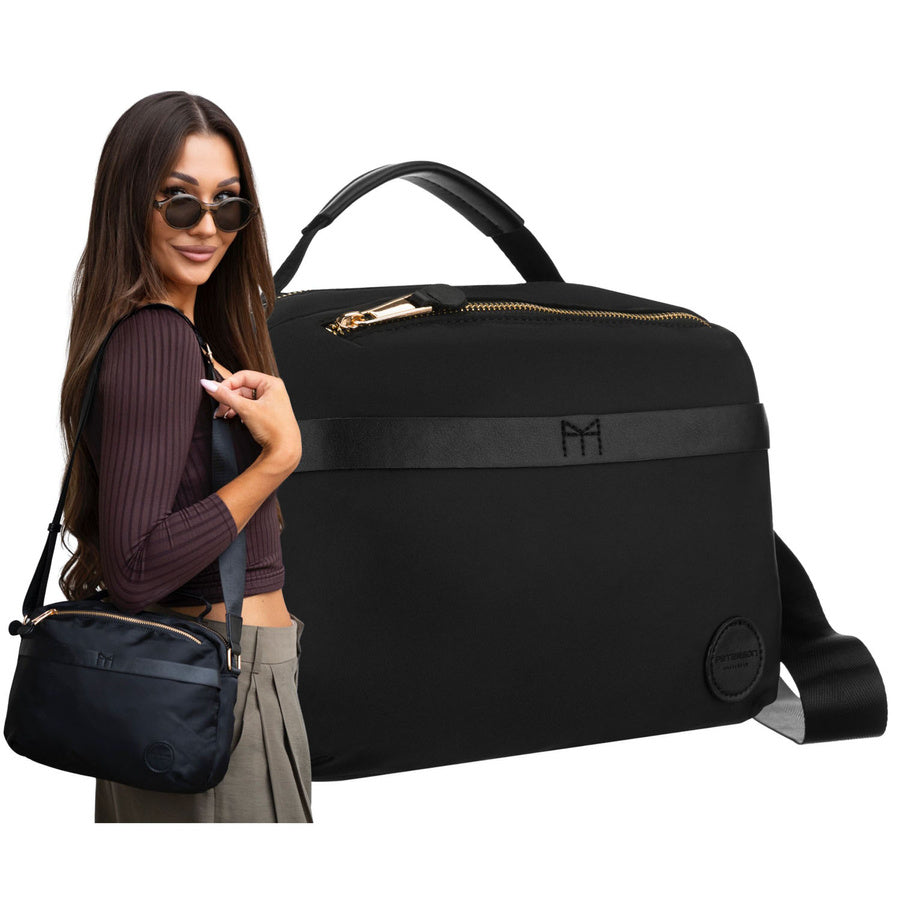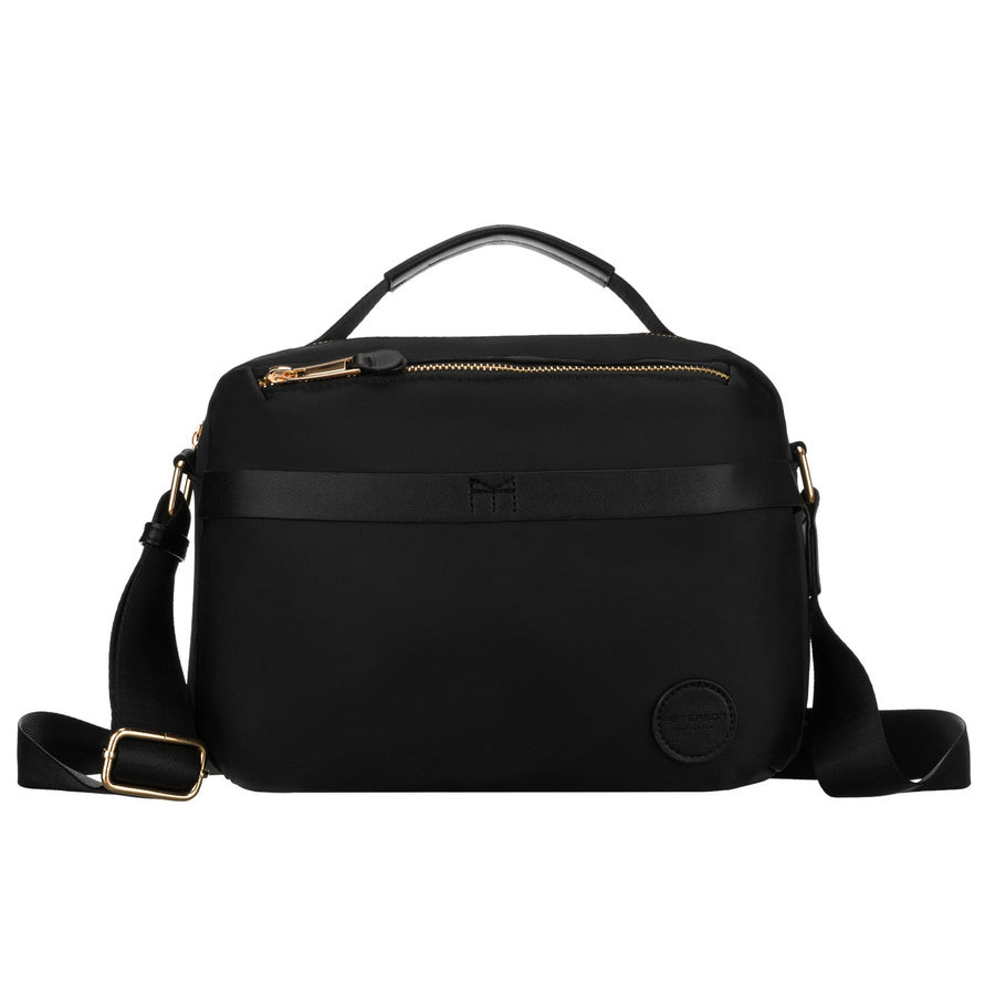 Sieviešu melna neilona Petersona kurjera soma, viens nodalījums, ar rāvējslēdzēju P14