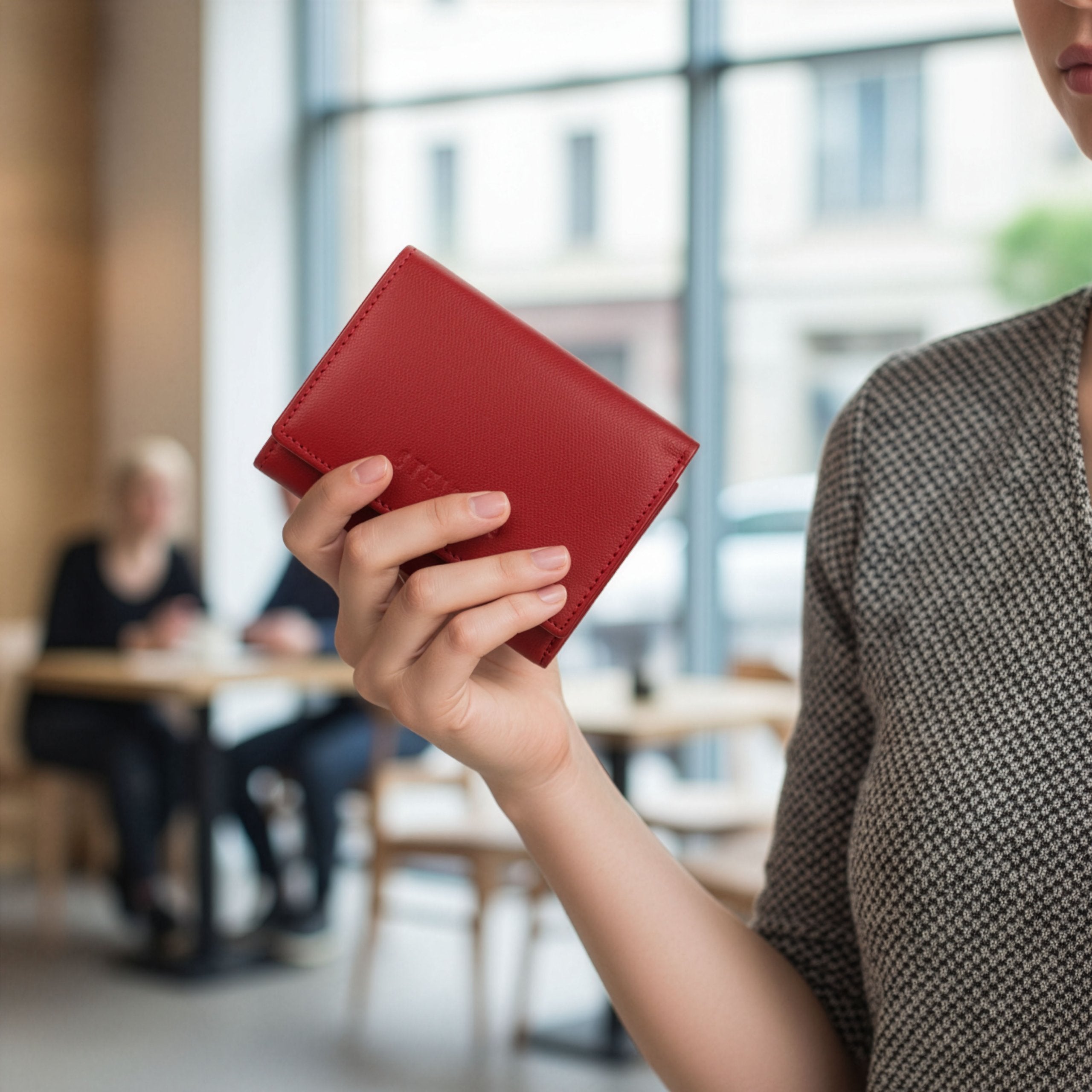 Sākums Sieviešu ādas maks Stevens, sarkans, ar RFID aizsardzību Z01-D02