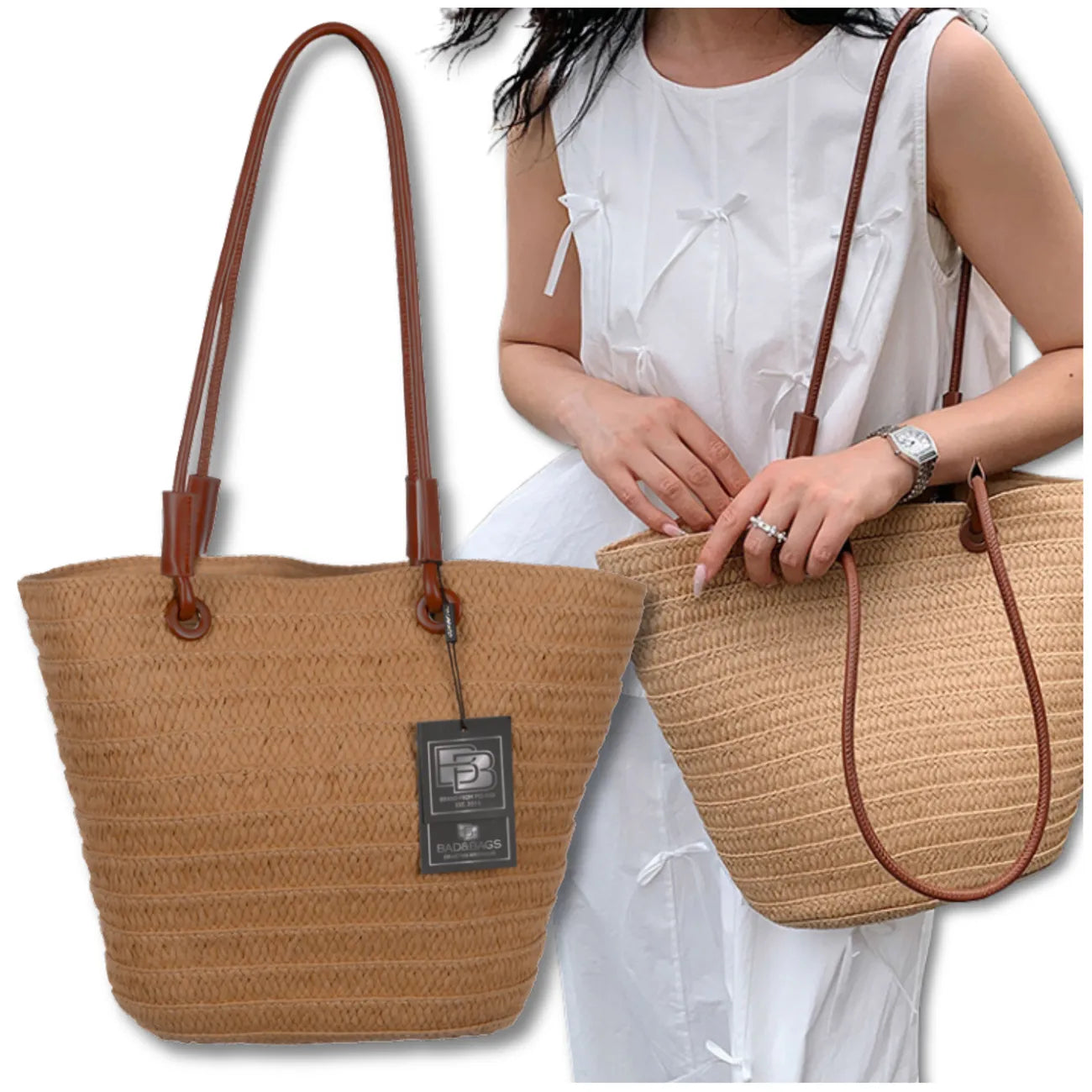 Sieviešu pludmales soma BAD&BAGS, liela, salmu krāsā, N485