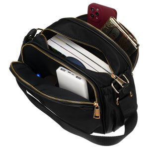 Sieviešu Peterson neilona melna plecu soma, viens nodalījums, 6 kabatas, P18