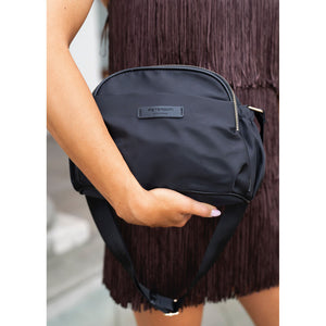 Sieviešu melna neilona plecu soma - viegla, ērta ikdienas lietošanai. Izturīgs neilona materiāls, praktisks nodalījumu izkārtojums un kompakts izmērs.