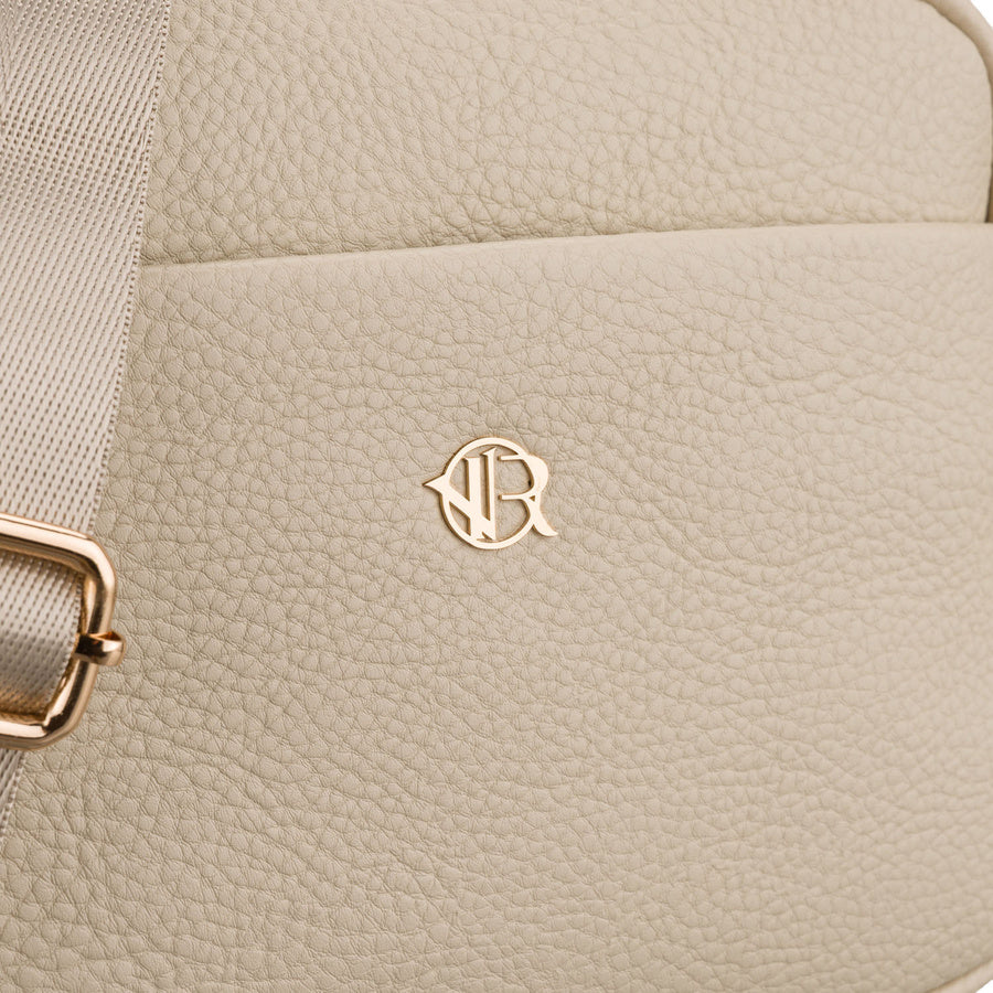 Moteriška „Rovicky“ crossbody tipo paštininko rankinė su užtrauktukinėmis kišenėmis, smėlio spalvos, iš ekologiškos odos P42