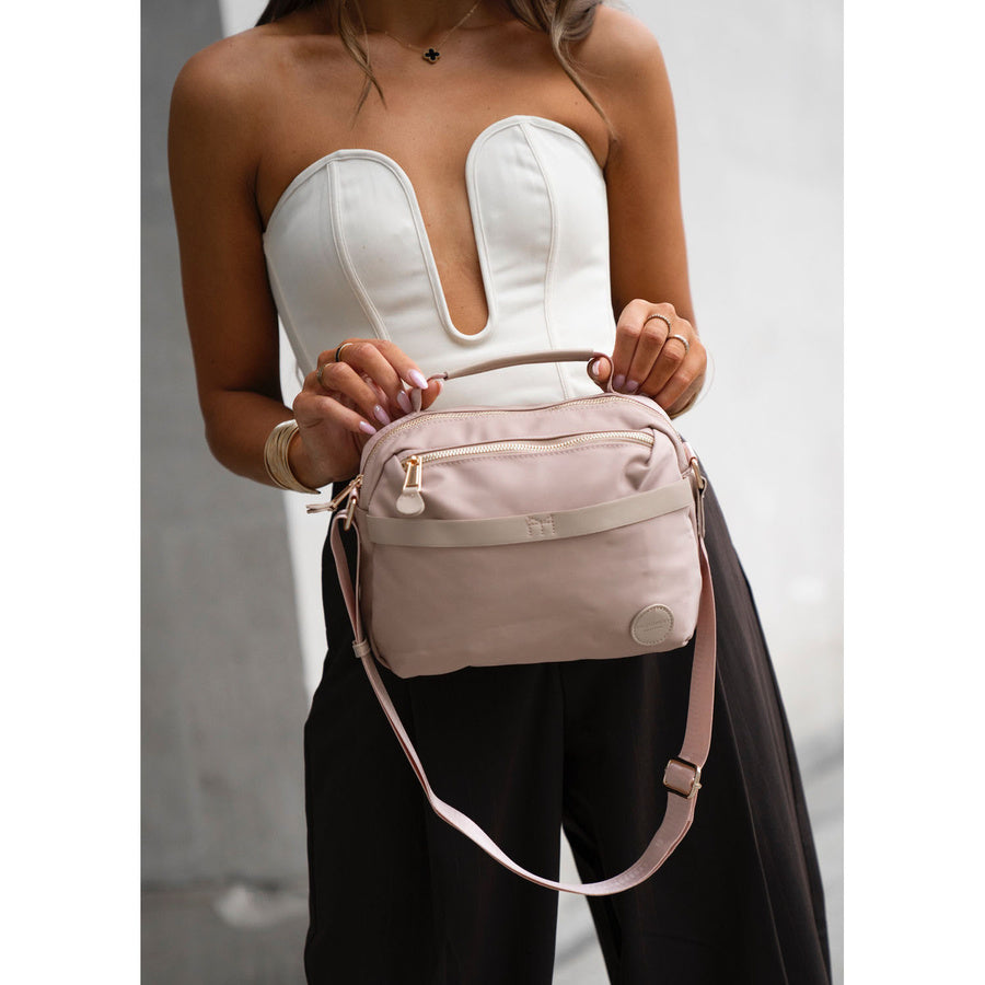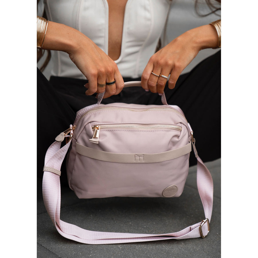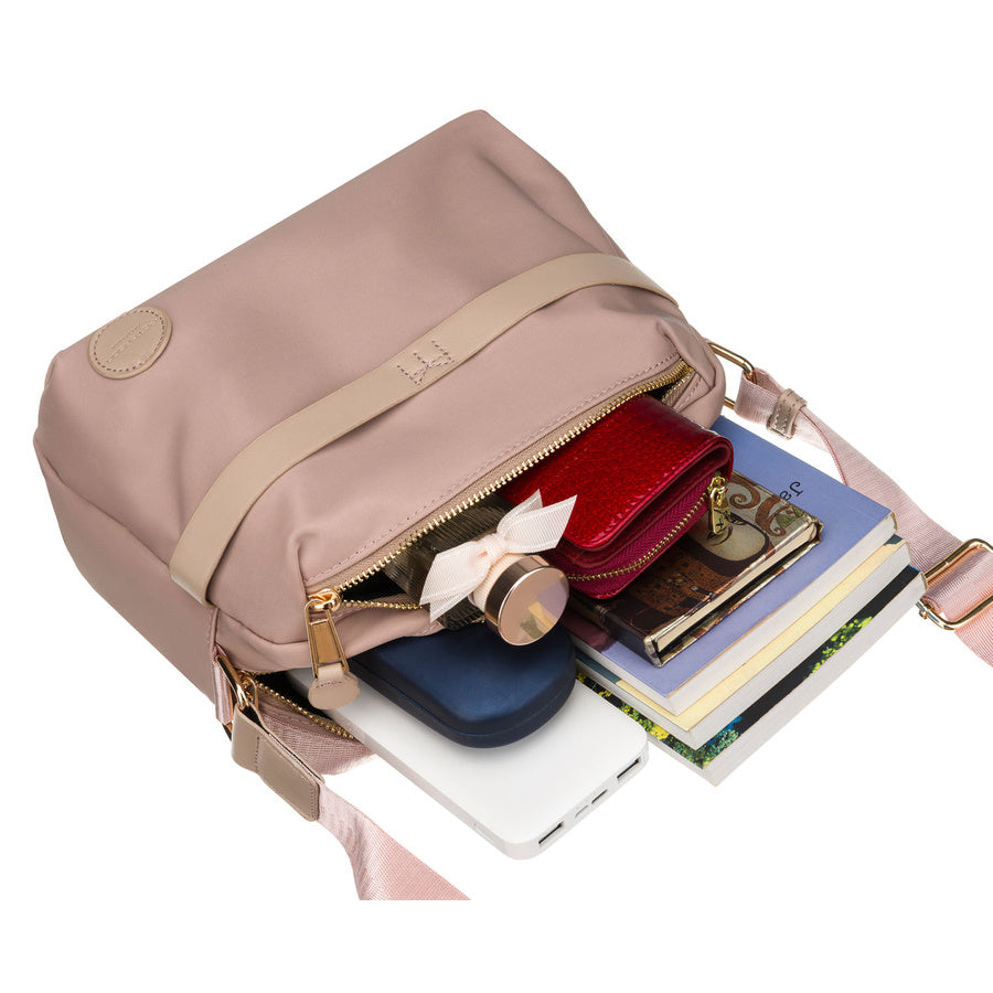 Sieviešu rozā neilona Peterson plecu soma ar rāvējslēdzēju P12