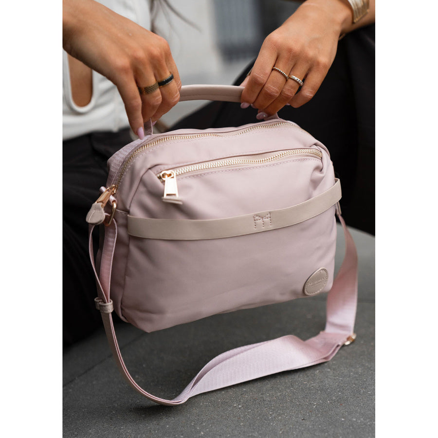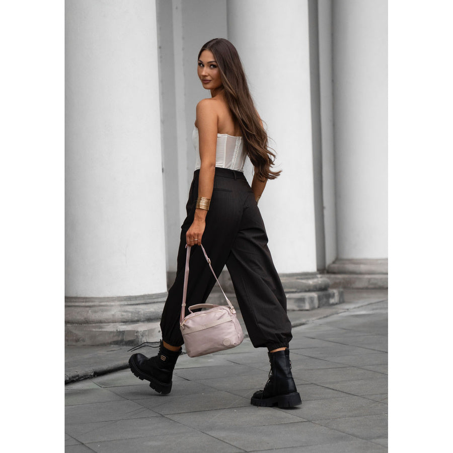 Rozā sieviešu plecu soma no neilona ar rāvējslēdzēja aizdari