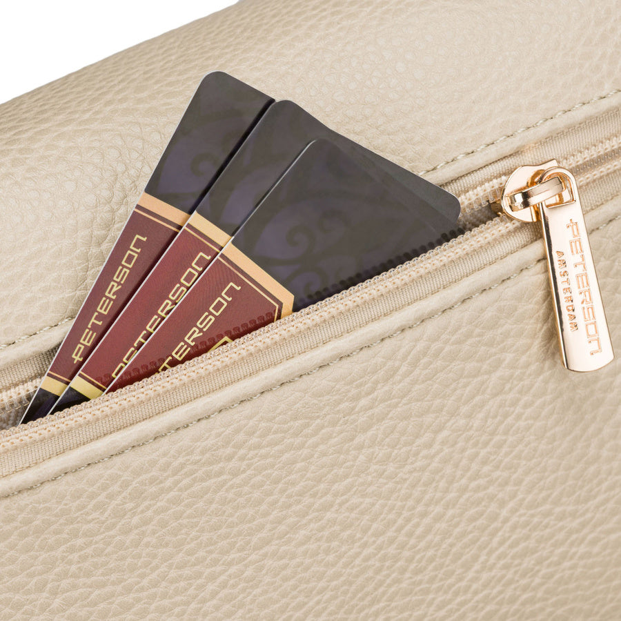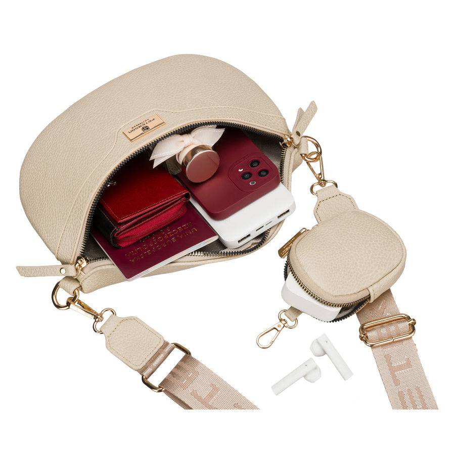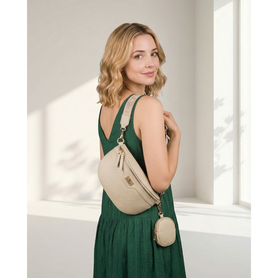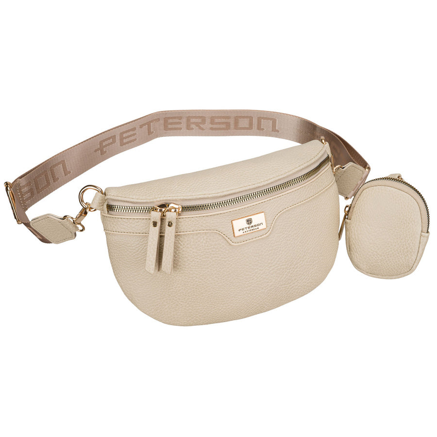 Moteriška smėlio spalvos ekologiškos odos juosmens rankinė „Peterson“ su prisegama pinigine TL17